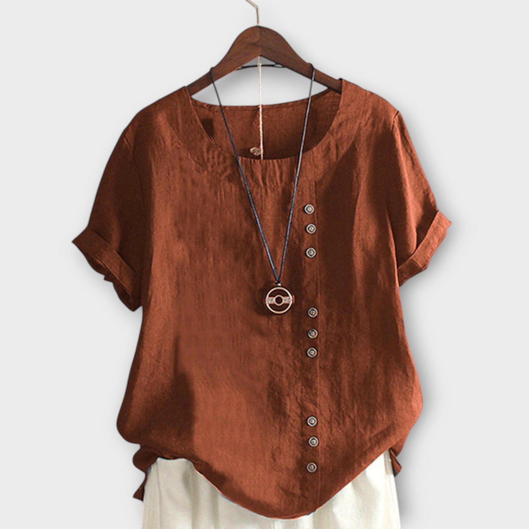 Add a touch of refined simplicity to your wardrobe with the Elora™ Linen Blouse!
